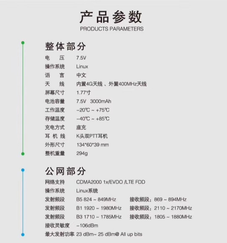 ● 天线:内置4G天线、外置400MHz天线